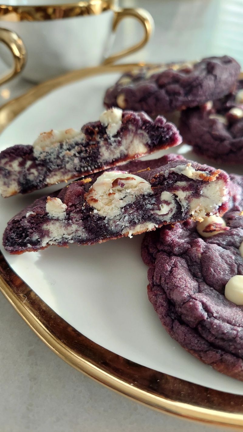 This signature cookie is made with a selected purple superfood (purple sweet potato), white chocolate chips and topped with 24kt edible gold. The flavor will tickle your taste buds.