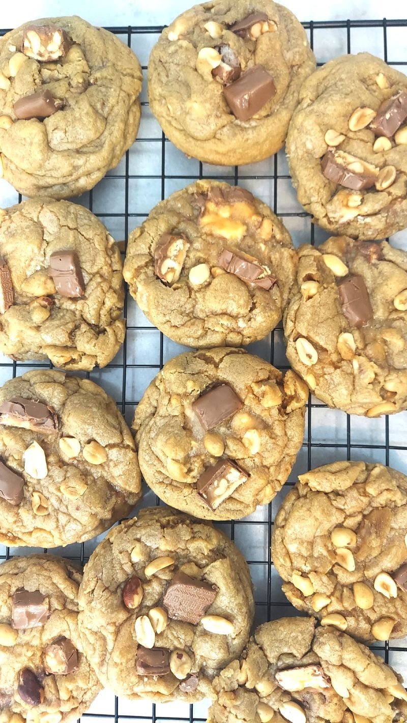 It's not the average snickerdoodle cookie. Indulge in our ooey-gooey cookie dough infused with chunks of America’s famous snickers with extra peanuts and caramel.