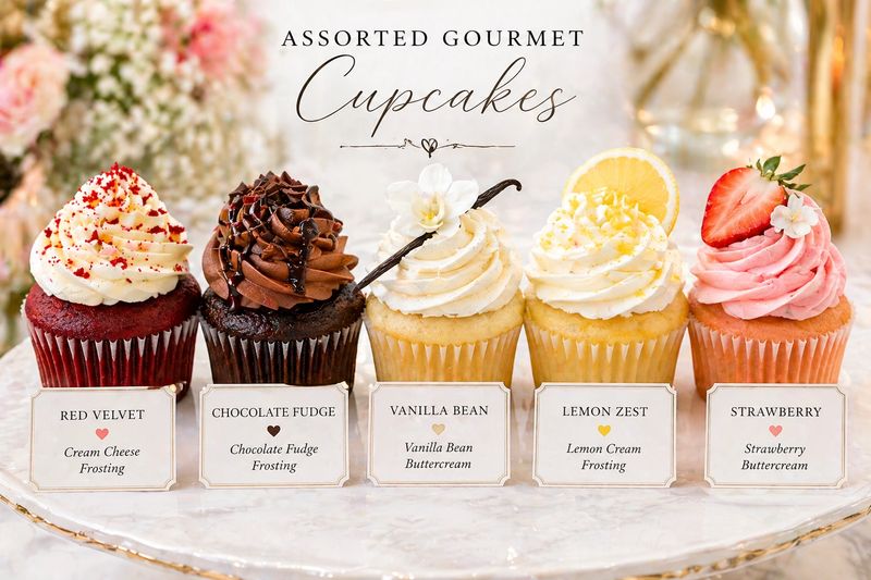 A delightful mix of our best-selling flavors, including red velvet, chocolate fudge, vanilla bean and lemon zest, and strawberry each topped with luscious frosting.