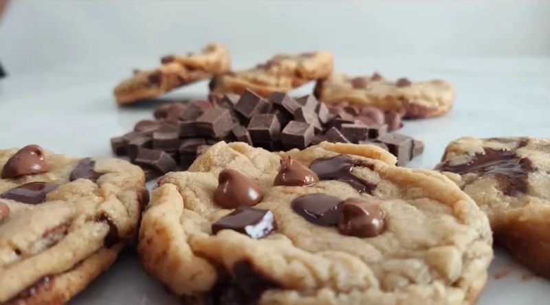 Freshly baked chocolate chip cookies-Indulge in our classy chocolate chip cookie filled with an abundance of three different chips that will take you to your happy place every time you take a bite.